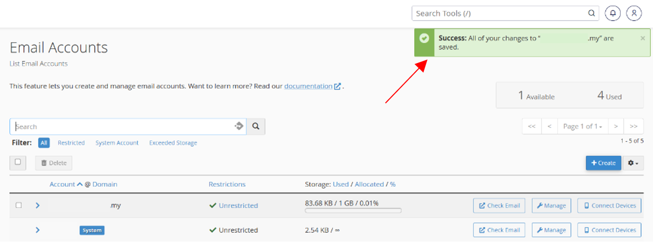 Using cPanel Email Accounts Menu