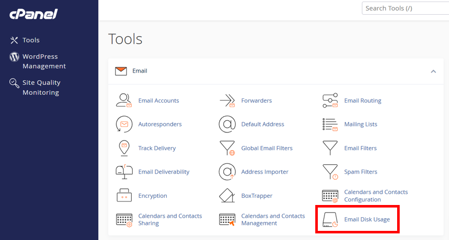 2. In the Email section, click 'Email Disk Usage'.