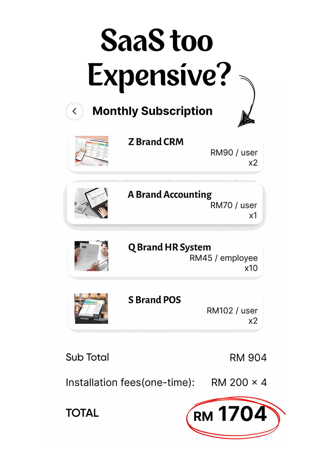 An all-in-one ERP solution that integrates CRM, HR, Sales, eCommerce Website, and Accounting to boost efficiency while being a cost-effective alternative to traditional SaaS.